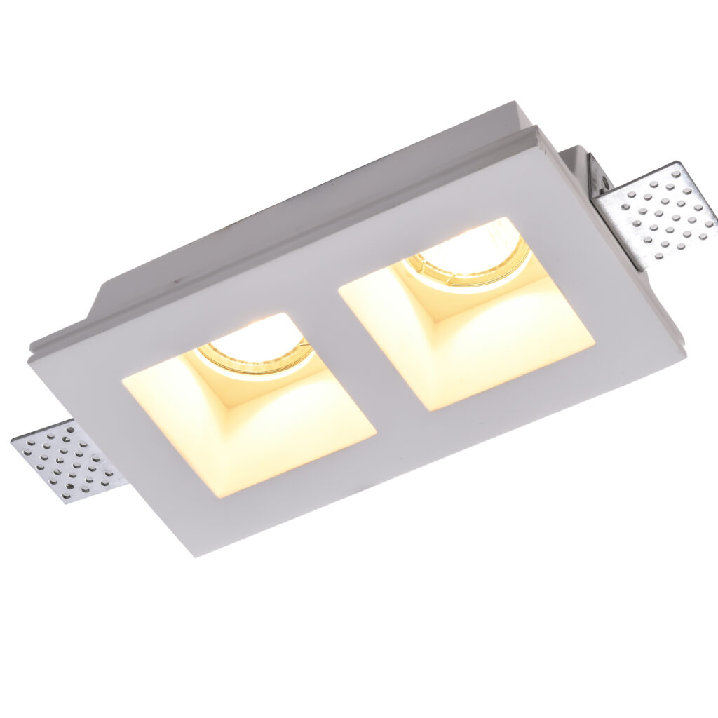 Made from natural gypsum material, these recessed fixtures can be painted to match the ceiling color, creating a clean and minimalist architectural lighting effect.